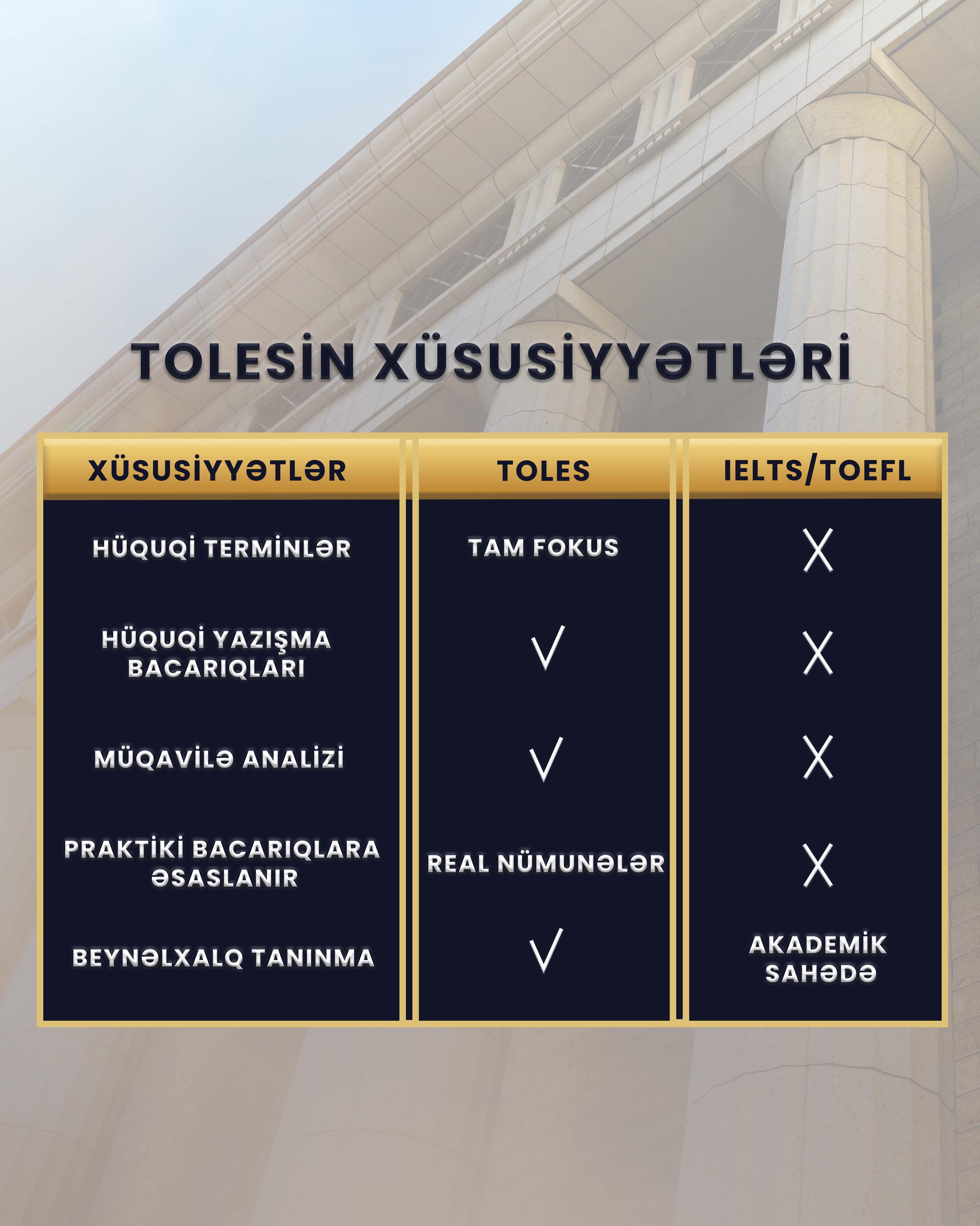 TOLES-Hüquqi ingilis dili sertifikatının xüsusiyyətləri